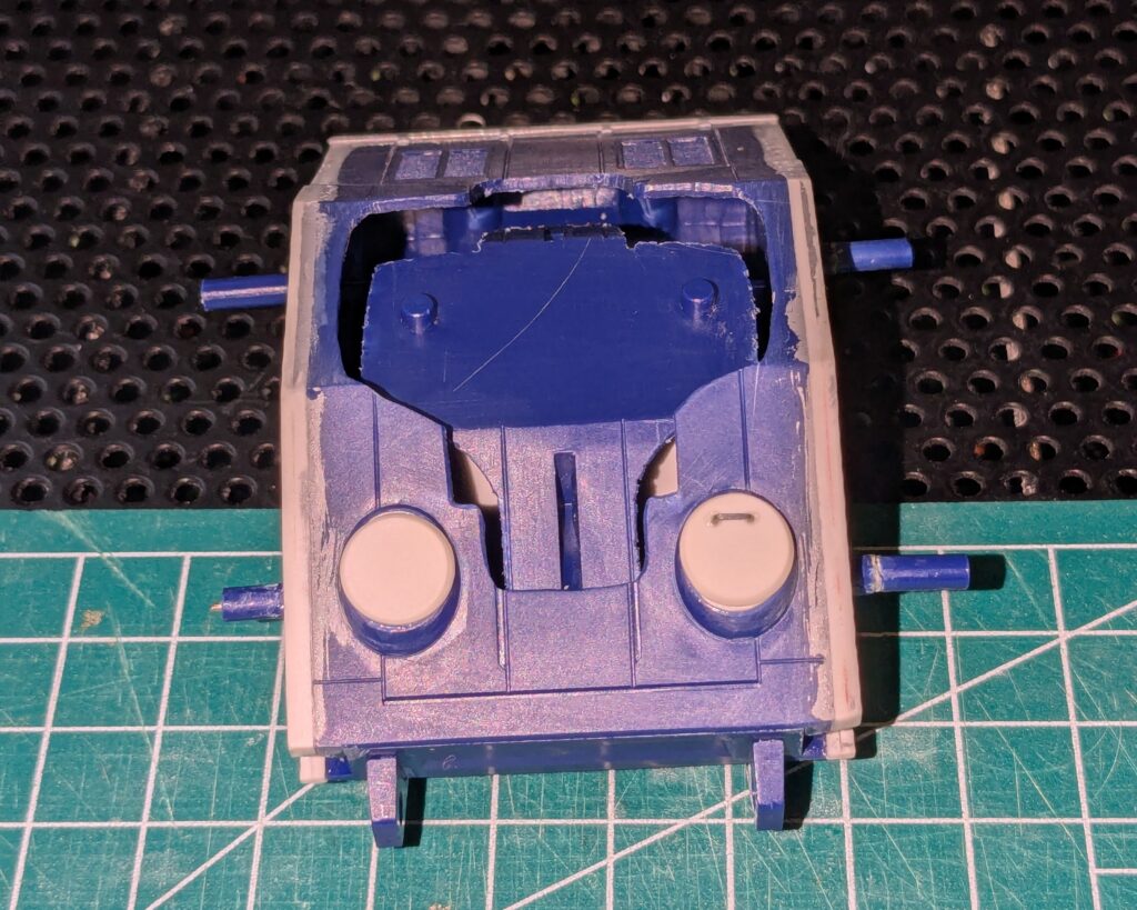 上半身に対して少し細身に見えた戦車部を、左右それぞれ1mmのプラ板で幅増し。